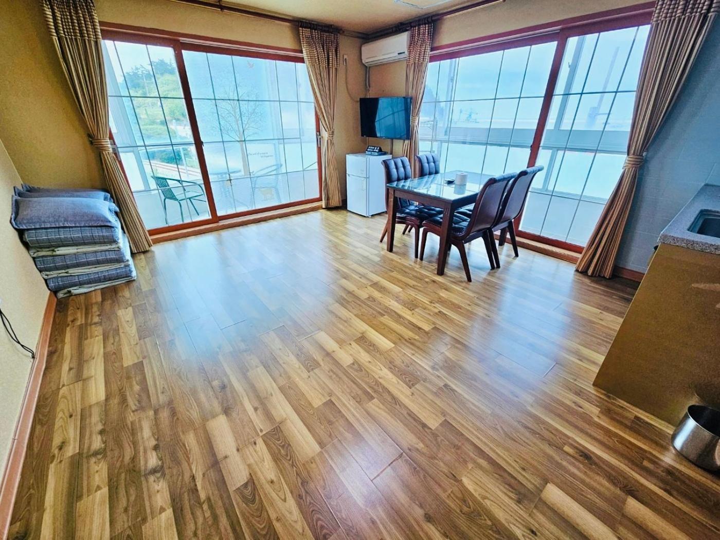 Korean-Style Family Room. The family rooms kitchenette, which has a refrigerator and kitchenware, is available for cooking and storing food. The family room features air conditioning, an electric kettle, a balcony with sea views as well as a private bathroom boasting a bath. The unit has 3 futons. ;