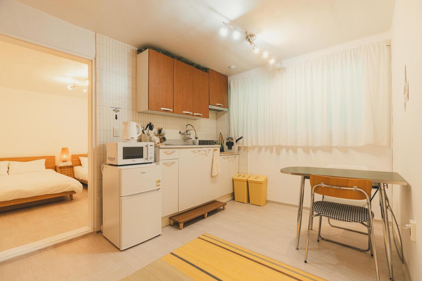 Two-Bedroom Apartment. The air-conditioned apartment has 2 bedrooms and 1 bathroom with a shower and a hairdryer. A kitchen fitted with a refrigerator, kitchenware and a microwave is available for cooking and storing food. This apartment features a dining area, an electric kettle, flat-screen TV with streaming services, as well as fruit for guests. The unit has 3 beds.