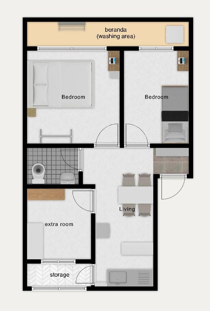 Two-Bedroom Apartment. Featuring a private entrance, this air-conditioned apartment is comprised of a kitchen, 2 bedrooms and 1 bathroom with a shower and a hairdryer. Meals can be prepared in the kitchen, which is fitted with a refrigerator, kitchenware, a microwave and an electric kettle. This apartment features a washing machine, soundproof walls, flat-screen TV with cable channels, as well as chocolate for guests. The unit offers 3 beds.