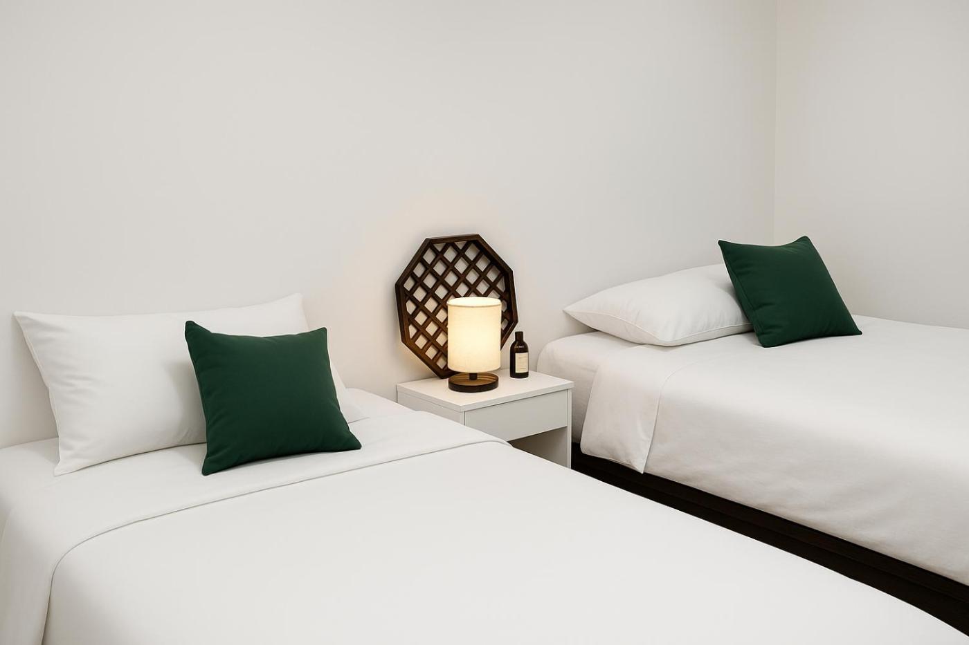 Three-Bedroom Apartment. Boasting a private entrance, this air-conditioned apartment includes 1 living room, 3 separate bedrooms and 1 bathroom with a shower and a hairdryer. The kitchen has a refrigerator, kitchenware and a microwave. The apartment offers a washing machine, a tea and coffee maker, a dining area, a wardrobe, as well as a flat-screen TV. The unit has 4 beds.