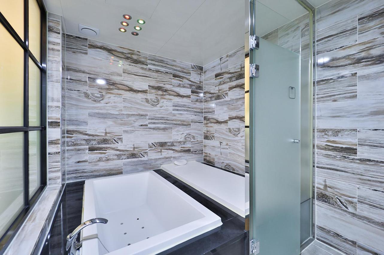 Queen Suite with Spa Bath. The hot tub is the standout feature of this suite. The air-conditioned suite has 1 bedroom and 1 bathroom with a walk-in shower and a bath. The suite features a washing machine, soundproof walls, a seating area, a flat-screen TV, as well as city views. The unit has 1 bed.